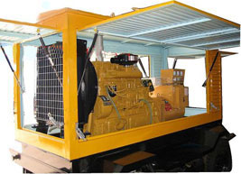 康乐柴油发电机组/移动柴油发电机组设计独具创新,机动性高、重心低、制动安全、制造精良、外形美观。 康乐拖车车架采用槽梁焊接成框架结构,节点选择合理、强度高、刚性好;同时装有钢板弹簧悬架结构;拖车采用高度可调节插销式牵引架,适用于各种高度牵引车;采用圆形钢管焊接直通式车轴,结构紧凑,安全可靠;车架四角设有机械式支撑装置,配备惯性行车制动、驻车制动和脱离应急制动,确保机组在各种状况下的安全;车架前端设有支撑轮,具备承受机组垂直载荷的功能的同时还具备导向功能;整车配备转向和刹车指示灯,同时装有尾灯标准插头